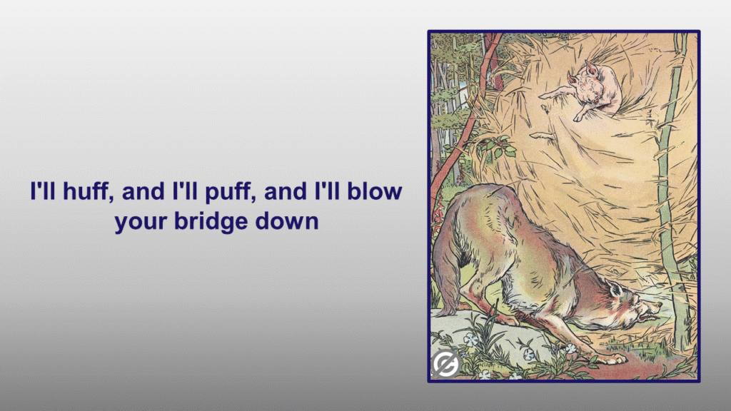 Essentially the company employed the First Little Piggie, because he was cheap and predictably the Big Bad Wolf, “huffed and puffed and blew down their bridge of straw.”.